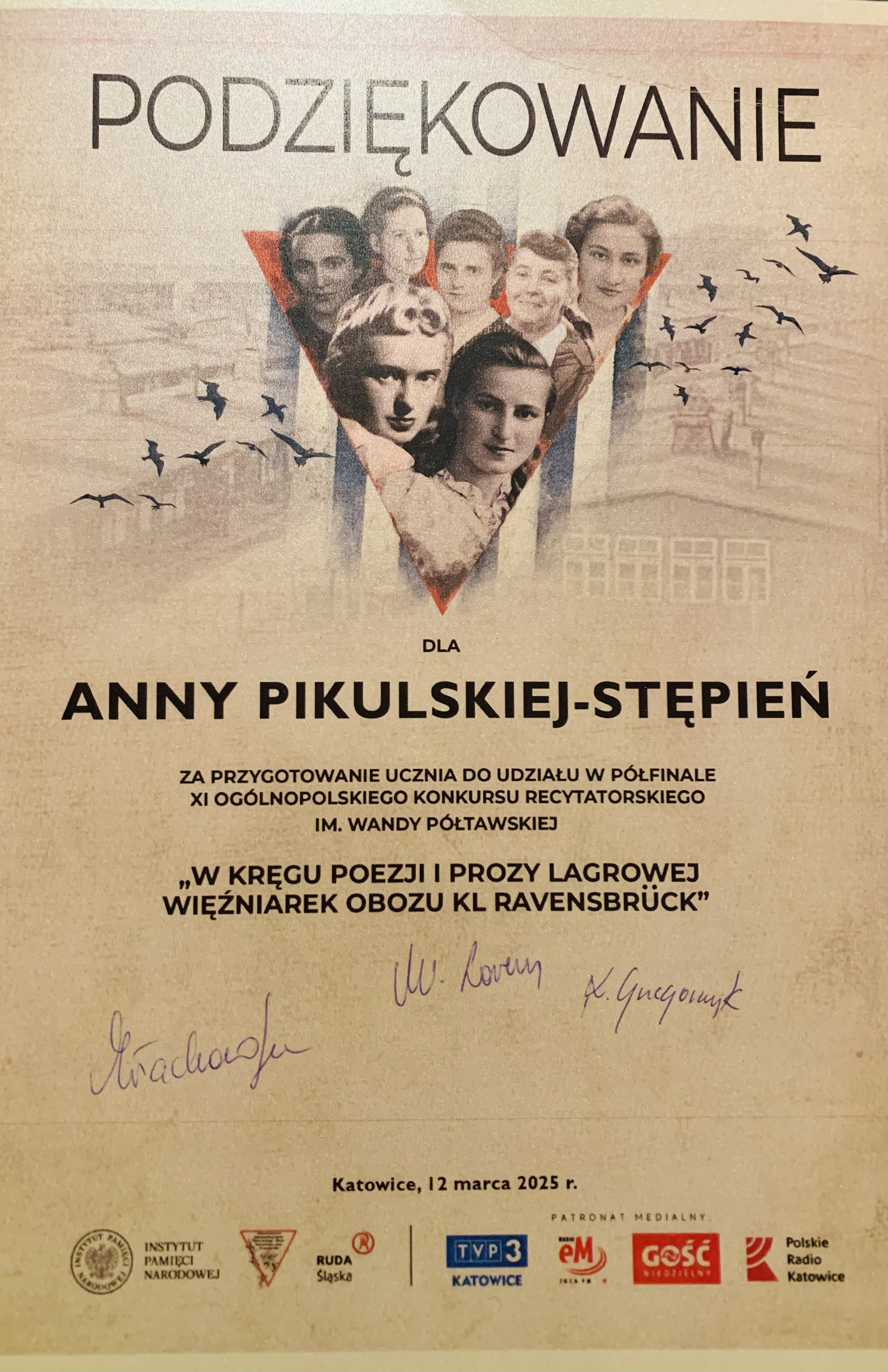 13 listopada w Przystanku Historia Centrum Edukacyjne IPN w Katowicach im. Henryka Sławika Oddziału IPN w Katowicach odbyły się warsztaty dla nauczycieli w ramach cyklu „Czas przełomów – Górny Śląsk w XX wieku”. Jedną z osób występujących z referatem była p. Anna Pikulska-Stępień, nauczycielka historii w naszym liceum, nagrodzona przez Instytut Śląski za scenariusz lekcji o 1945 r. na Górnym Śląsku.