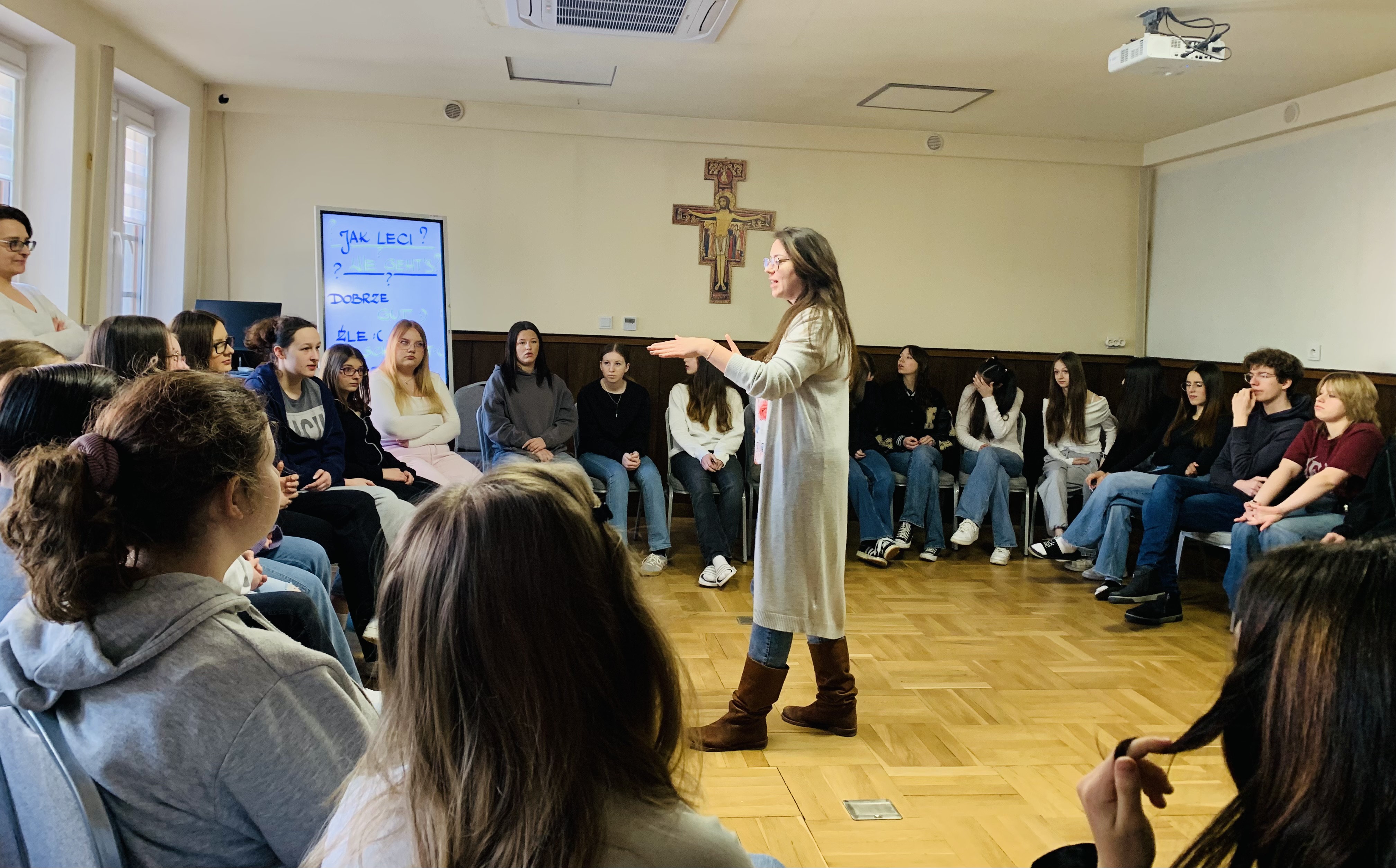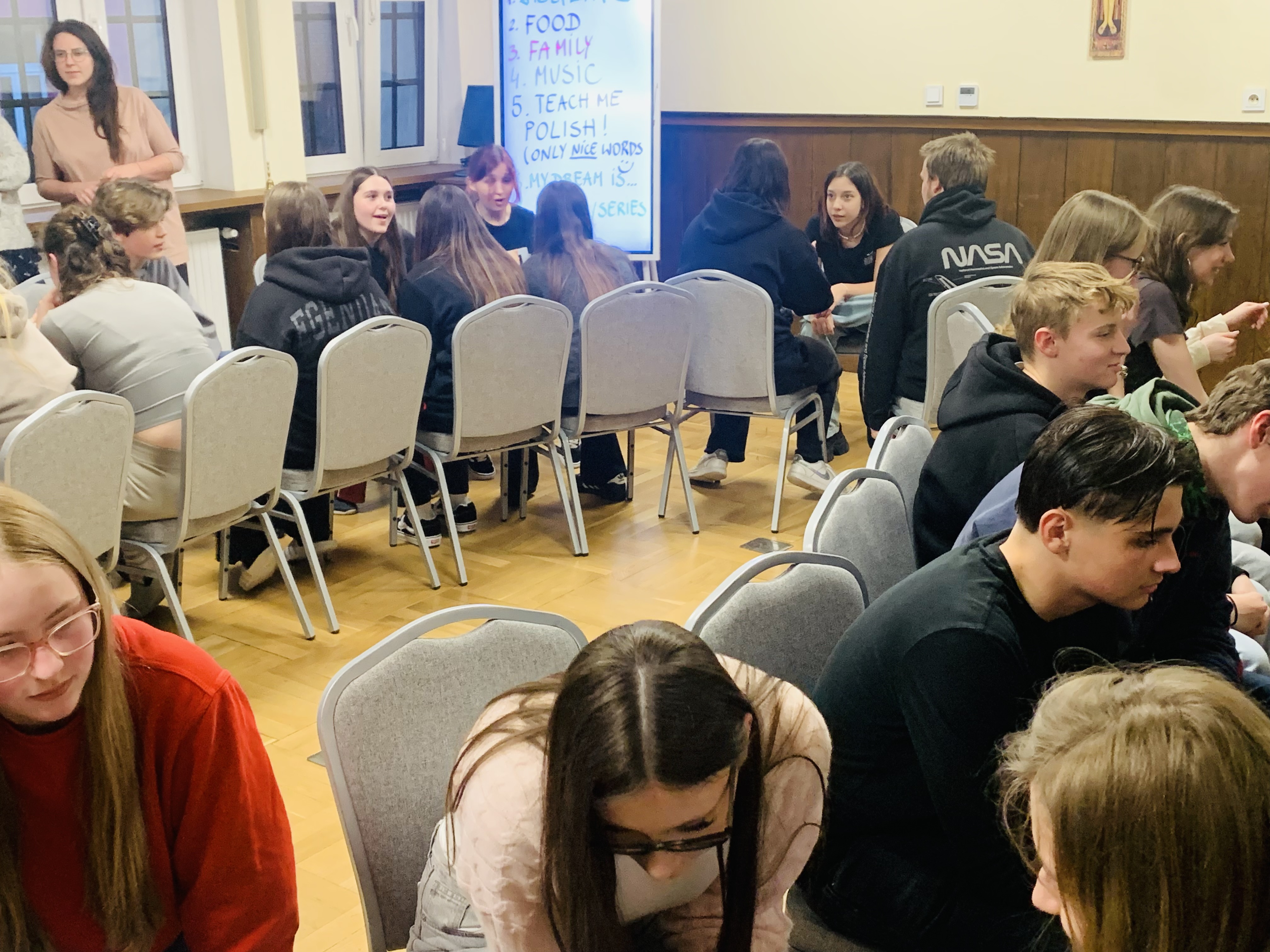 Zajęcia prowadzone były w całości w języku angielskim, co dało uczniom doskonałą okazję do praktycznego ćwiczenia języka w naturalnych sytuacjach. Program był bardzo interesujący i angażujący – młodzież brała udział w: