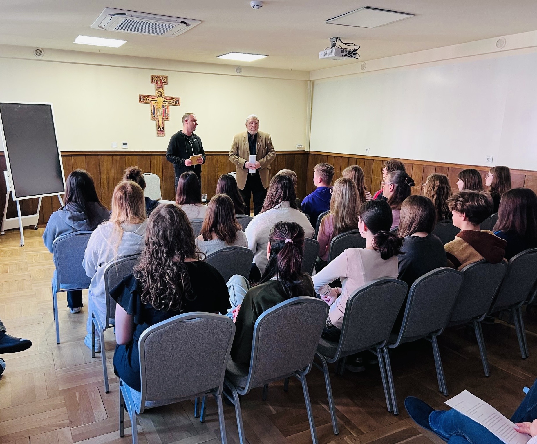 Uczniowie klasy IVA i grupka uczniów z klasy IVE dzięki prelekcji przypomnieli sobie treść dwóch ważnych dzieł literackich: „Procesu” Franza Kafki i „Roku 1984” George’a Orwella. Dowiedzieli się także, że te dwa dzieła literatury światowej są opisem systemów totalitarnych. Pani prelegent zwróciła uwagę na cechy totalitaryzmów, które są obecne w obu powieściach, a także odniosła się do współczesnych systemów totalitarnych.