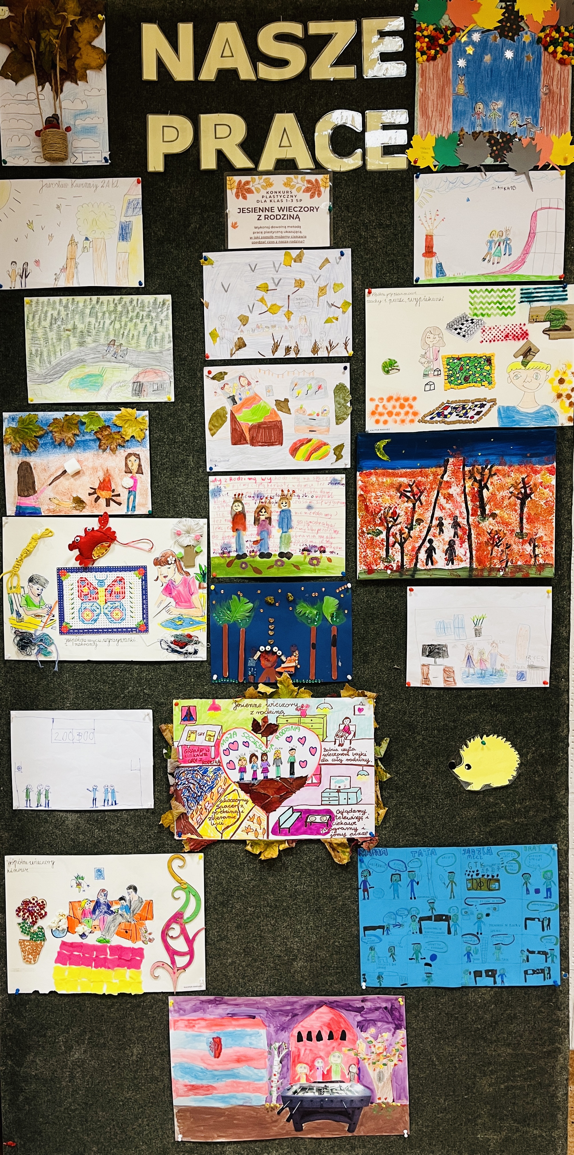 Uczniowie szkoły podstawowej na lekcjach plastyki wykonali w zespołach przestrzenne prace plastyczne na temat bezpiecznych ferii.