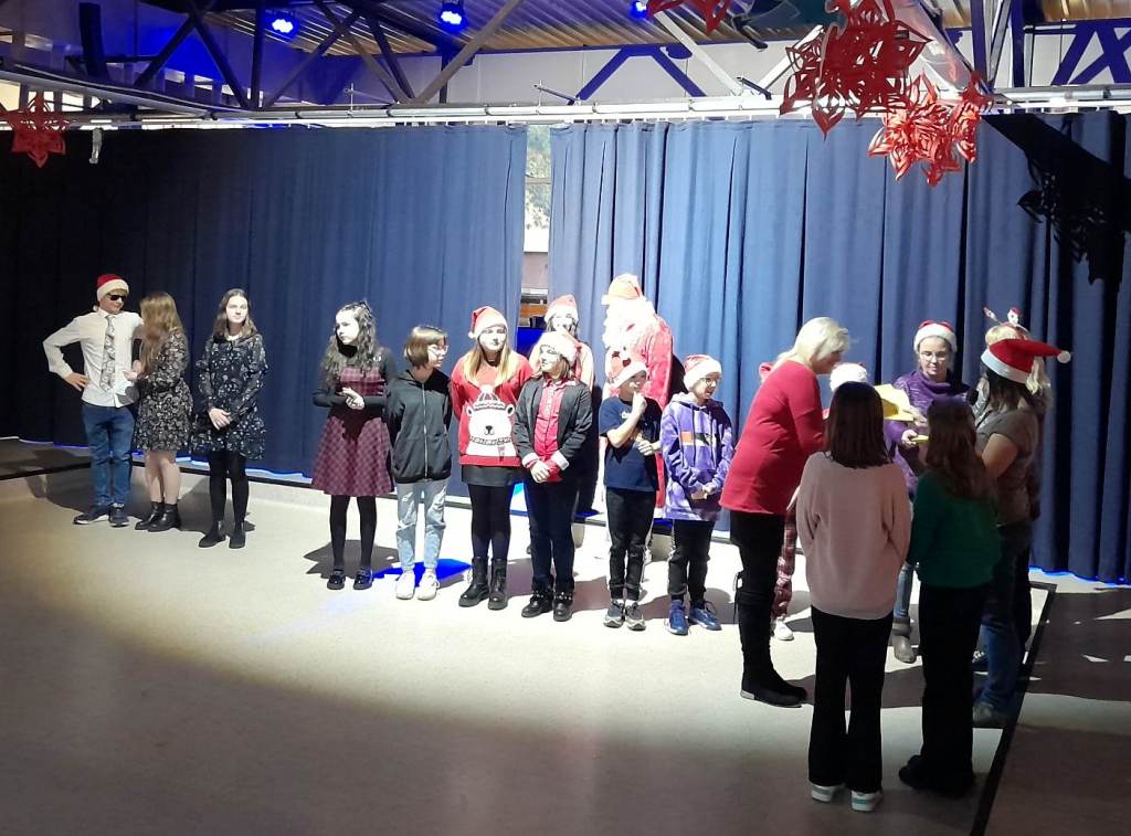 Z kolei uczniowie klasy 3c wystąpili dla swoich kolegów z klas 1-3 SP pod hasłem: „Bo jak nie my, to kto”. Były wiersze, życzenia i przebój – nasz przebój :) Uczniowie sami ułożyli słowa do wspomnianego przeboju Mroza i spektakularnie go wykonali.