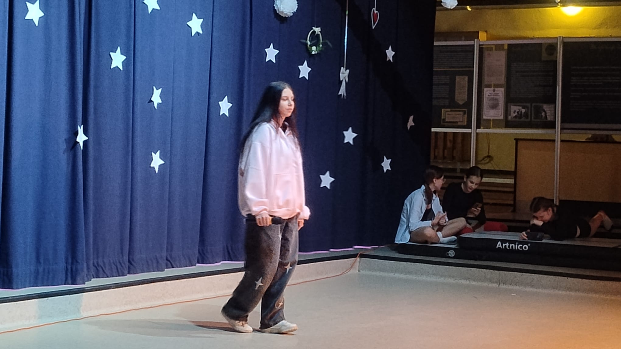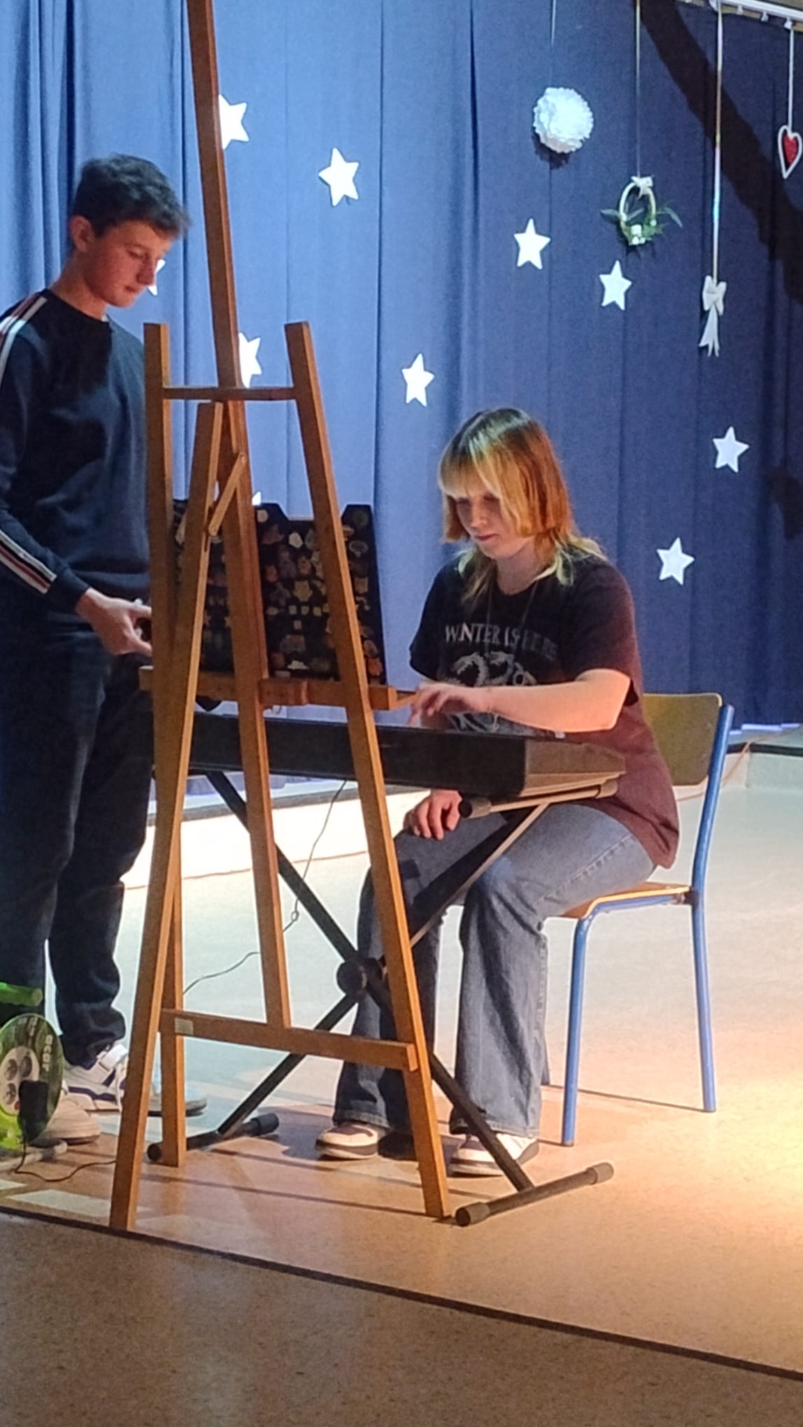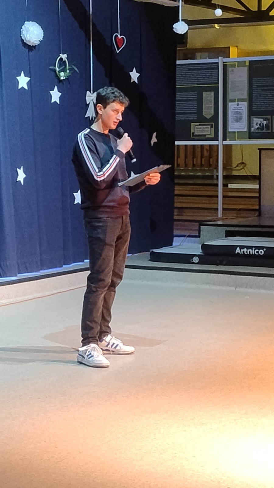 Pierwsi pożegnali rok nasi najmłodsi. Akademię przygotowała dla nich klasa 1b SP. Po uroczystym odśpiewaniu hymnu publiczność miała okazję wysłuchać zarówno wzruszających, jak i pełnych humoru słów, które skłoniły do refleksji nad mijającym rokiem szkolnym, a jednocześnie pozwoliły z radością spojrzeć w stronę nadchodzących wakacji.
